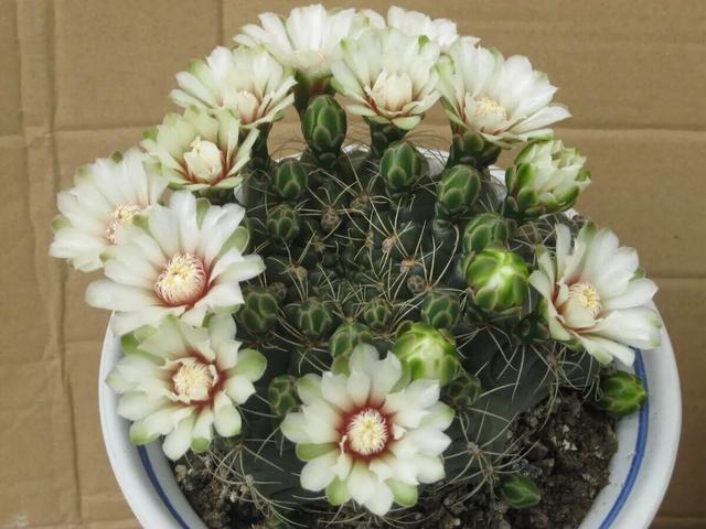 4、仙人球 仙人球可不是多肉,很多人都是這么想的。反之亦然。甚至很多花友都認為,這玩意比多肉更有觀賞價值。 這是一種有“開花機器”之稱的植物,如果精心照料,其花朵不但大,而且十分漂亮,而且能持續(xù)很長時間。