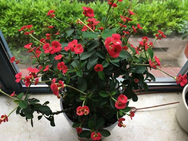2、虎刺梅 虎刺梅也很好,四季如春,開的花個頭不大,卻又不少,很適合家中種植。 放在家中,三年不動,就放在客廳的桌子上,定時給它澆水,不受太陽的照射。在這樣的情況下,它依舊充滿了生機,一天一天的綻放著花朵。 許多花友早就發(fā)現(xiàn),它確實是一朵很適合懶散的花,對生長環(huán)境也沒有太大的要求。