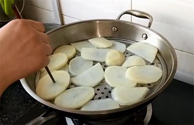 1.準備一個土豆,先把土豆去皮切塊,鍋內水燒開以后蒸10分鐘。