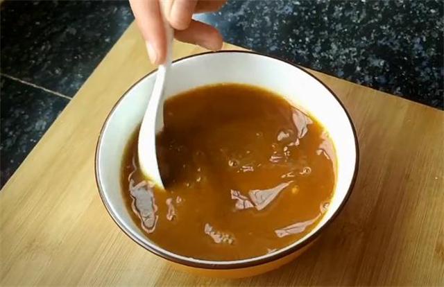 4.下面準備一碗水來調料汁,加一勺生抽和一勺陳醋,少許的食鹽和一勺白糖,適量的老抽,半勺素蠔油,再加點淀粉攪拌均勻待用。