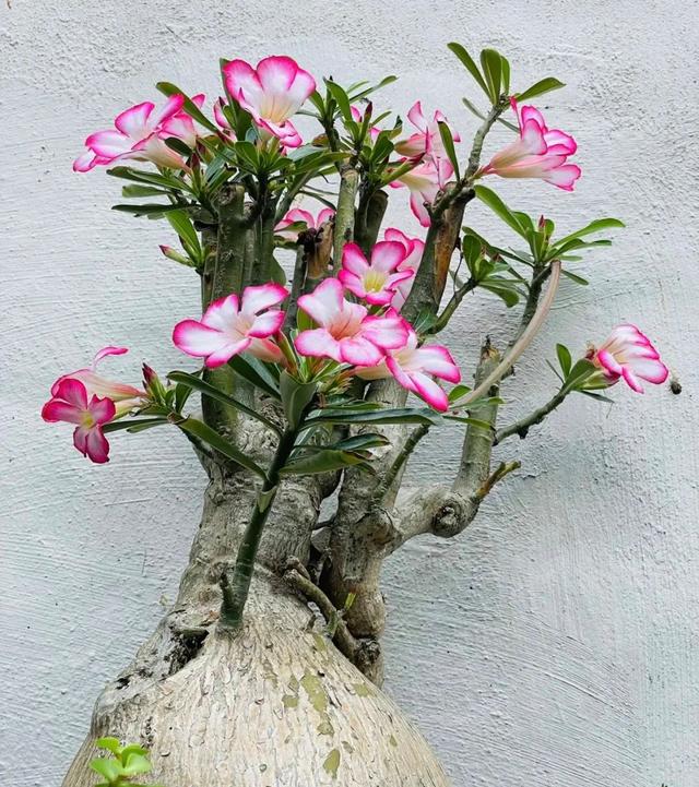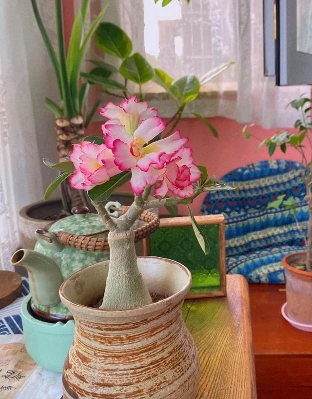 沙漠玫瑰擁有絕色的容顏,它的花朵魅力超凡,多姿多彩,華貴高雅,點綴于客廳陽臺,都能帶來無限的美好。 它的外形也是它的特色之處,特別粗大肥壯,可儲存很有養(yǎng)分和水分,因而十分耐旱養(yǎng)護起來簡單方便,只需放在有光的地方,四季都能開不停。