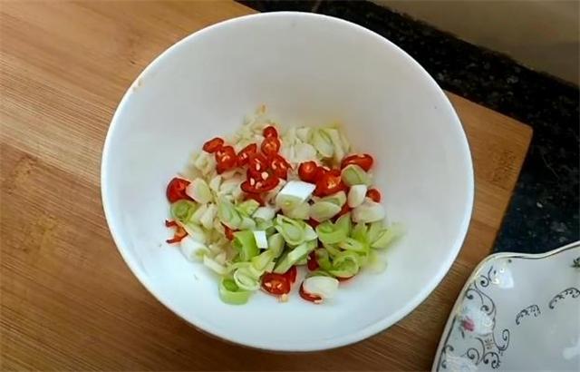 2.把姜和蒜末拍碎,再切適量的小米椒,切一根香蔥。