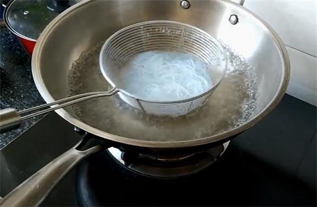 3.把粉絲放到鍋內(nèi)燙熟,然后過下涼水。