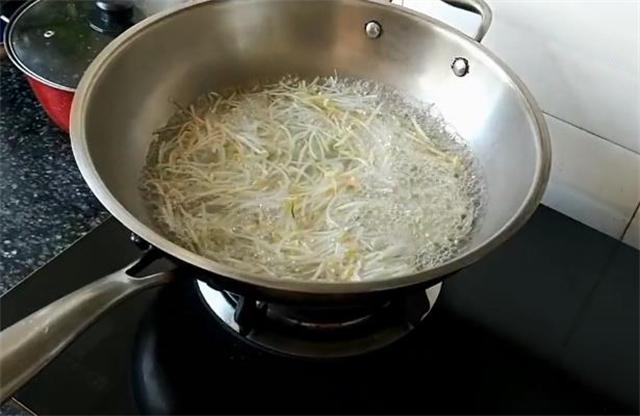 4.再把綠豆芽放到鍋內(nèi)煮熟。