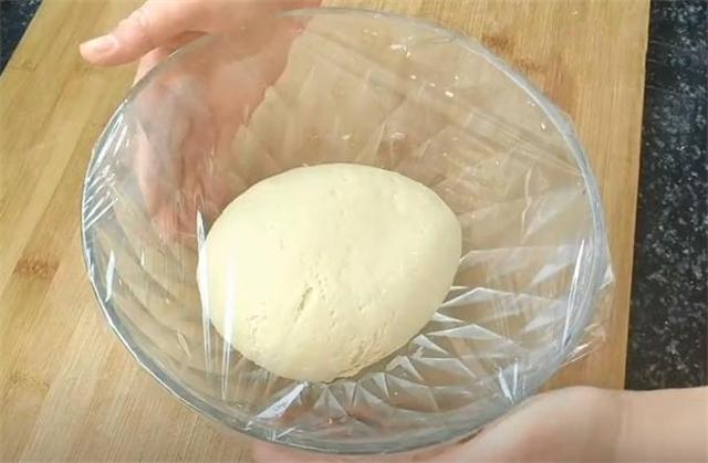 1.準備高筋面粉400g,半碗清水加2g的食鹽,鹽水邊加邊攪拌,揉成稍微偏硬的面團,揉成團后蓋上保鮮膜醒面15分鐘。