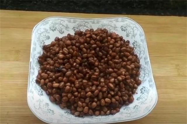 2.這個是提前泡了一夜的紅豆,開火放鍋里煮,水快煮干的時候加入兩勺白糖,水開以后裝盤放涼備用。