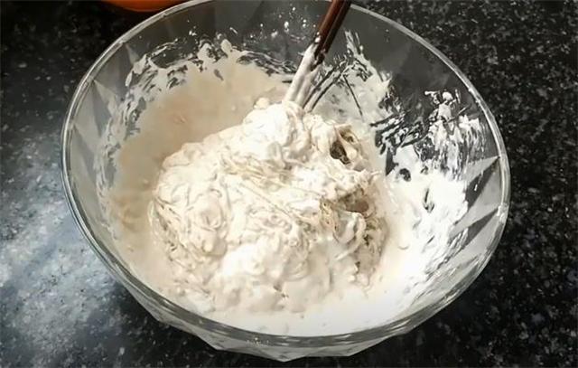 4.碗里倒適量的紅薯淀粉,邊加涼水邊攪拌,攪拌的時候要用力攪拌。