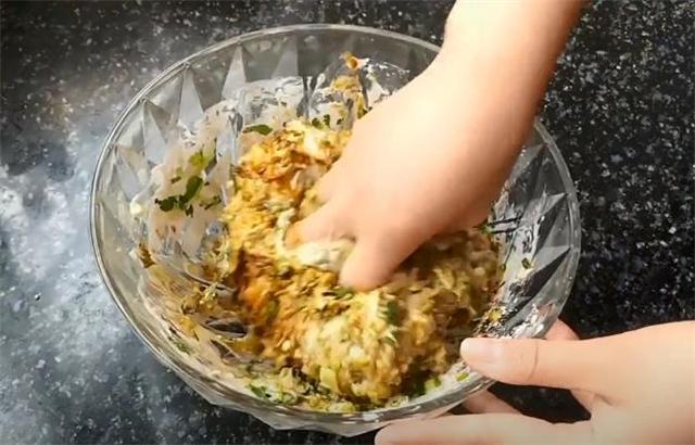 6.倒入剛切好的食材,加入適量的食鹽,適量的十三香,再加半勺生抽和少許老抽,用手抓勻。