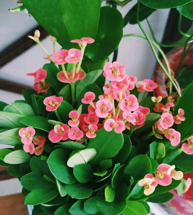 虎刺梅是一種灌木植物,又名鐵海棠,枝條上有很多小刺,密密麻麻,可能會引發(fā)密集恐懼癥,但你去觀賞它的花朵,又非常迷人,粉粉嫩嫩,像梅花又不是梅花,特別清新雅致,很適合點綴客廳陽臺書房。 虎刺梅是一種壽命超長的花,大概可以存活30年之久,這也證明了它的生命力很旺盛,不需要花費過多的心思去打理,也可以長的好。另外,極少出現(xiàn)病蟲害,到了夏天,更是可以抵抗高溫的天氣。