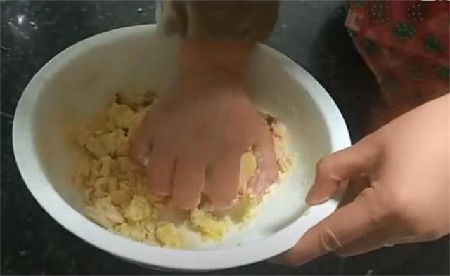 2.奶油葡萄干洗干凈,加入玉米面里,再加適量面粉揉成面團。