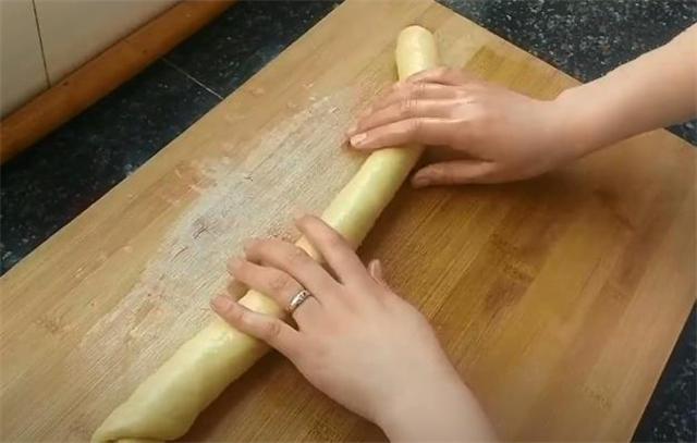 4.案板上抹點油,卷成長條。