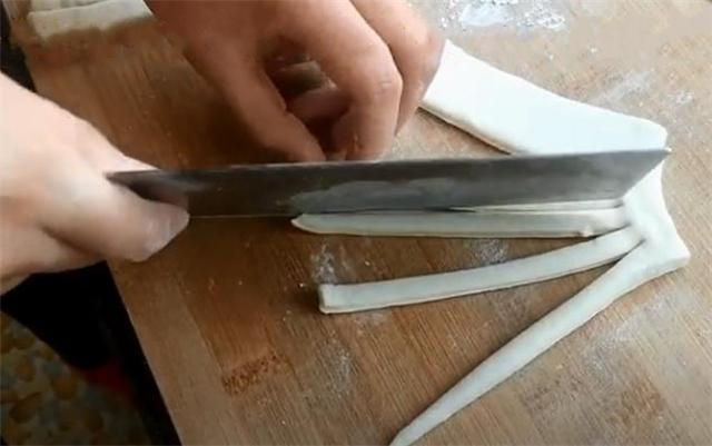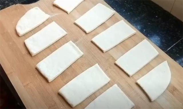 2.再搟成長(zhǎng)方形的餅。