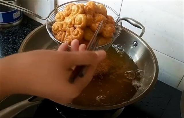 7.鍋內(nèi)加適量的食用油,用筷子試一下油溫冒小泡泡就可以了,然后下鍋炸,炸熟后撈出控油,美味即成,這樣的餅一點(diǎn)也不油膩,而且非常的松軟,香甜適口,給小朋友當(dāng)零食再合適不過(guò)了,學(xué)會(huì)了一定要在家試試做哦。 |