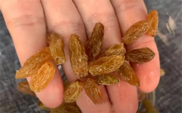 5.再準備一把葡萄干放碗里面,加入少量的淀粉把它清洗一下,因為葡萄干的表面有很多的褶皺,里面藏著很多灰塵和雜質,所以我們要用淀粉把它清洗一下,淀粉可以快速的洗掉葡萄干表面的灰塵和雜質,洗干凈以后用漏勺把它過濾出來,再多清洗幾遍,看一下,現在已經洗的非常干凈了,把它放一邊備用。