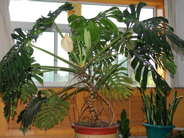 4、格調(diào)高雅的龜背竹 我曾經(jīng)看到過,當它生長起來,遮天蔽日,占據(jù)了大半個房間的時候,你是不是很吃驚?要知道,這玩意兒可是熱帶森林里的一種寄生植物,如果長在樹上,那就是遮天蔽日了。 龜背竹的生活習慣與綠蘿相似,也就是說,放在家里,龜背竹可以自由生長,如果珍惜一點,多施肥多澆水,長到半間客廳那么大,似乎也不是不可能。