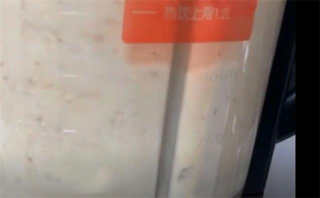 3.現在小米已經泡好了,把它倒進破壁機里面,再把泡好的花生米連水一起倒進來,蓋上蓋子,選擇果蔬鍵,將它打成小米糊,可以多打幾遍,這樣會更加的細膩。