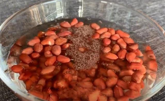 2.下面再準備50g花生米,花生米最好選擇這種紅皮的,更加有營養而且更香,加入清水把它浸泡一下。