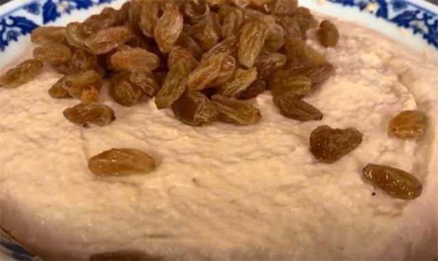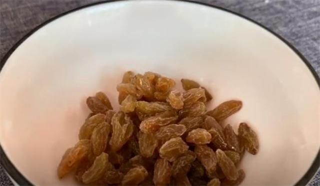 5.準備一把葡萄干,加入一勺面粉,再加入清水把它清洗一下,用面粉能很快的把葡萄干表面的臟東西吸附出來,把它多洗幾遍,洗干凈后用漏勺過濾出來,放碗里面備用。
