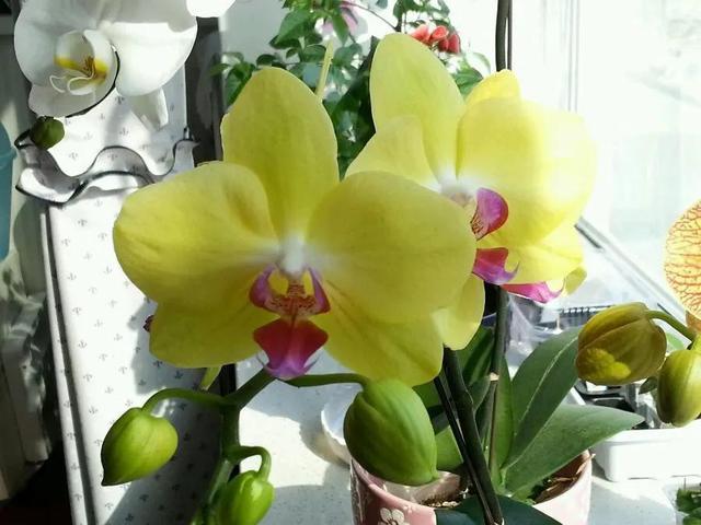 6、蝴蝶蘭 在廁所的窗臺上,曾經有一段時間,擺放著三盆蝴蝶蘭,這三盆蝴蝶蘭在這段時間里,養的很好。 出乎意料的是,廁所里的環境對蝴蝶蘭也很適合,溫度和濕度都很好,通風也很好,北面的光線也很好,讓它葉子碧綠,花莖粗大。 很多花友都覺得蝴蝶蘭不好養,為什么不嘗試一下北邊的陽臺,或者是廁所,這樣會有更好的效果,但是廁所里的空氣太潮濕,會導致蝴蝶蘭的根腐爛。所以一定要注意多通風,不能濕度太高。