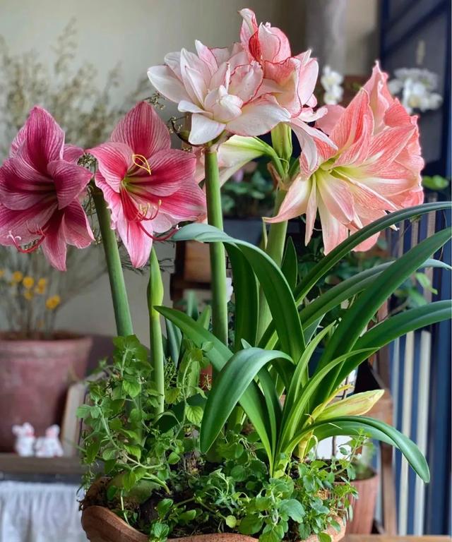 在當下,特別流行養朱頂紅,有些朱頂紅的癡迷者,甚至會養滿整個陽臺,不同顏色的朱頂紅,給環境增光添彩,帶來無限的美好。朱頂紅的諧音是注定紅,代表吉祥和好運。 它的花朵華貴高雅,端莊秀麗,不是牡丹,卻勝似牡丹,也象征繁榮昌盛,很適合點綴桌面或者是窗臺,供人欣賞。