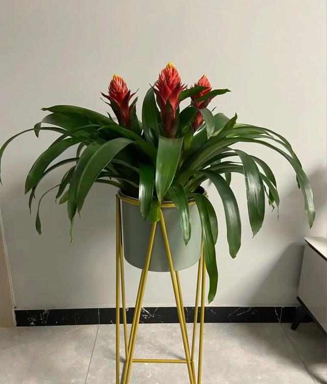 說起紅色的花,也會想起鴻運當頭,也叫錦葉鳳梨,多個葉片簇擁著一個大紅花,葉片碧綠,柔中帶硬很有光澤,有吉祥的花語,寓意鴻運當頭,財源滾滾。