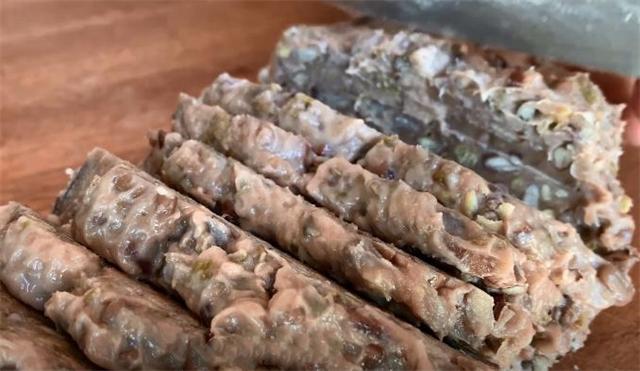 7.然后放在案板上,用刀在四周都劃上一圈,方便脫模,再切成小塊就可以開吃了。