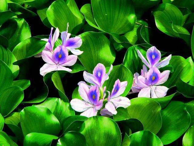 2、鳳眼蓮 此物乃是一種漂浮于水中的水草,但其花瓣卻呈現(xiàn)出青紫色,花心位置則有一片深藍(lán),而在花心位置,則有一個黃色的小點(diǎn),看起來像是一只只眼珠子。 分布于我國南部的江河之中,其生長速度也很快,想要的話,可以從邊上砍下一截枝條,將其帶走。 但是,這玩意不需要再養(yǎng),更不能扔掉,這玩意不但能在河邊長,而且還能在蔭涼的地方長,長得很快,絕對不能小看。 而要將鳳眼蓮培育得好,更是容易,畢竟這是一種水生植物,天生喜水,多澆點(diǎn)水,不但不會害它,還會對它大有裨益!