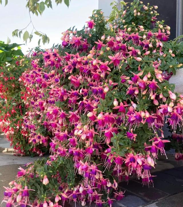 有顏值有魅力的花卉,還屬倒掛金鐘,首先說說它的花朵,就像倒掛于枝頭的小燈籠,形態優美,多姿多彩,隨風擺動搖曳生姿,自帶喜感,可以給環境增添更多的色彩。臺適合點綴桌面或面,可以懸掛于窗前或廊下。 倒掛金鐘的花期很長,從春天到夏初,熬過夏天之后,秋天還會開花,堪稱爆花機器,開花小能手,但這么好看的花,養護難點也是超級高的,尤其是被稱為度假困難戶,一到之夏天紛紛陣亡,