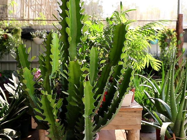 13、量天尺 一種仙人掌,可以一直長到很高,即使是在限制其高度的盆栽中,也能見到一兩米高的參天巨樹。丈天尺,光是這個名字,就讓人感覺很有氣勢,作為一朵護宅之花,絕對是搶手貨!
