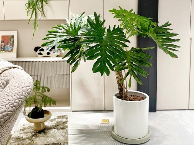 10、龜背竹 一種生長在熱帶雨林中,生長在高大的樹木之上,是一種很常見卻又很受室內設計師喜愛的大型綠化植物! 龜背竹和客廳非常搭配,它的生活習性也非常的好,可以放在電視柜旁邊,墻角,沙發旁邊,玄關旁邊,都有很好的裝飾效果。