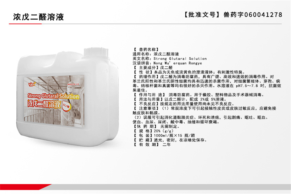 5.置放:將消毒后的物品置放到室外通風(fēng)處,讓物品在空氣中自然干燥后再使用。 三、注意事項 1.2%戊二醛消毒液不適合用于皮膚和粘膜的消毒,以及食物消毒; 2.使用2%戊二醛消毒液消毒時,應(yīng)注意房間內(nèi)通風(fēng),避免接觸到眼睛和口腔; 3.2%戊二醛消毒液對有色金屬和有機(jī)物有腐蝕性,使用時應(yīng)慎重;