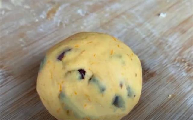 8.取出一個面劑子,從邊緣往里揉,把它揉成一個小圓球,像這樣就可以了。
