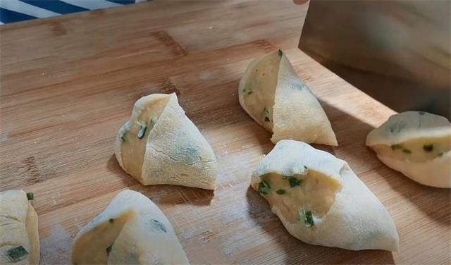 3.把它放在案板上,先不用醒面,直接搓成長條,用刀分成大小均勻的面劑子。