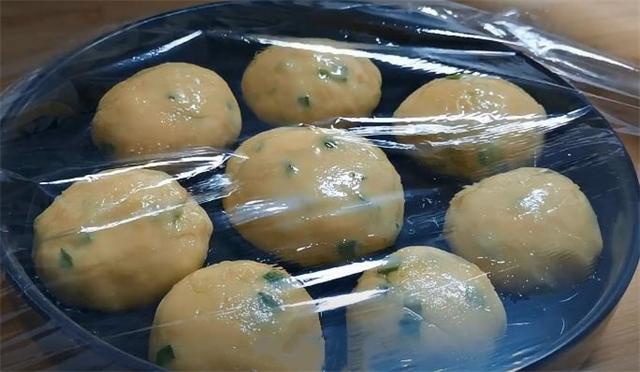 5.準備一個盤子,底部刷一層油,把小面團依次放入盤中,再在面團上面也刷上一層油,蓋上保鮮膜醒10分鐘。