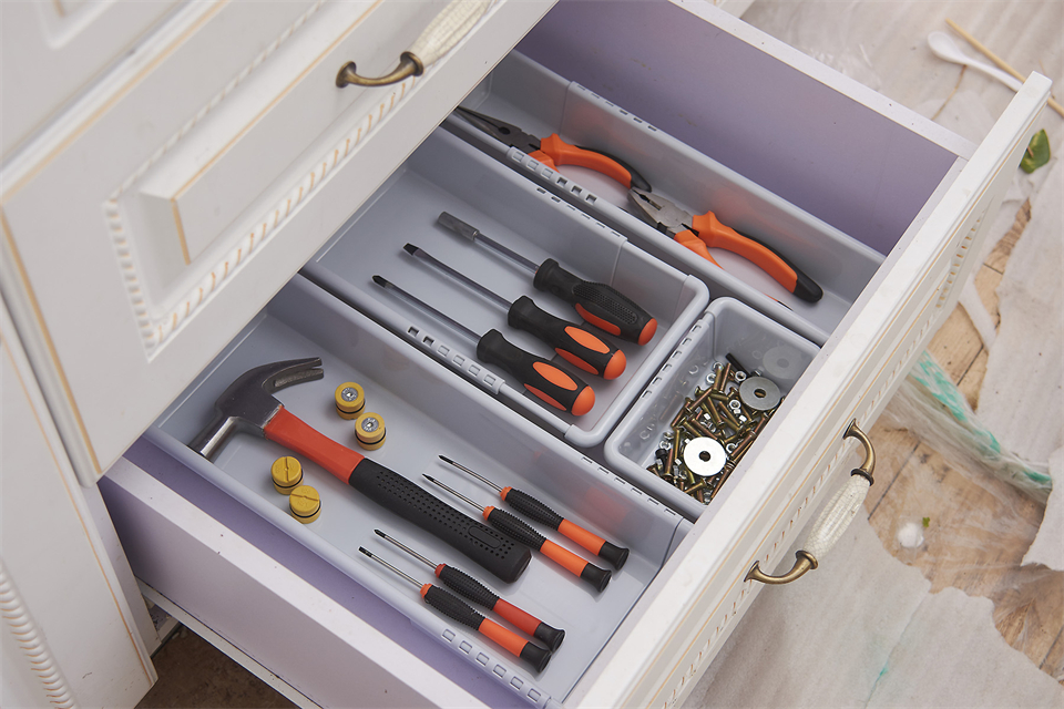 把大件物品分成小件,有助于收納整理,也可以有效地增加儲物空間。比如,把衣柜中的服裝按照類型分類收納;把桌子上的文具分類收納到文件夾中;把書籍分類收納到書架上等。 8. 用抽屜收納