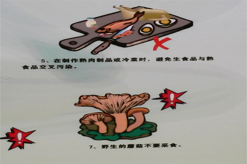 2、只有孩子一人在家時,要叮囑好,假如有人敲門,一定要先通過貓眼看清來人的樣貌,只要是陌生人,堅決不能開門。 九、防食物中毒 1、不吃不新鮮的食物和變質食物。不吃來路不明的食物; 2、加工菜豆、豆漿等豆類食品時,一定要充分加熱。不吃發芽、發霉的土豆和花生; 3、一定不要采摘和食用剛噴灑過農藥的瓜果蔬菜。食用蔬菜水果前要用清水浸泡一段時間,以去除果菜表面殘留的農藥; 4、生熟食品分開存放。保持廚房清潔。烹飪用具、刀叉餐具等都應用干凈的布揩干擦凈; 5、動物身上常帶有致病微生物,一定不要讓昆蟲、兔、鼠和其他動物接觸食品;