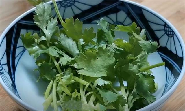 5.準(zhǔn)備一小把香菜將它切成段,切好放入碗中備用。