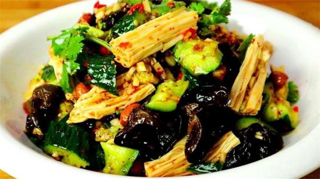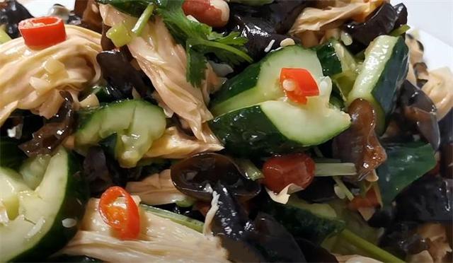 準備食材: 黃瓜、腐竹、木耳、大蒜、小米辣、蔥白、香菜、食用油、生抽、香醋、香油、鹽、白糖、熟花生米 具體做法: