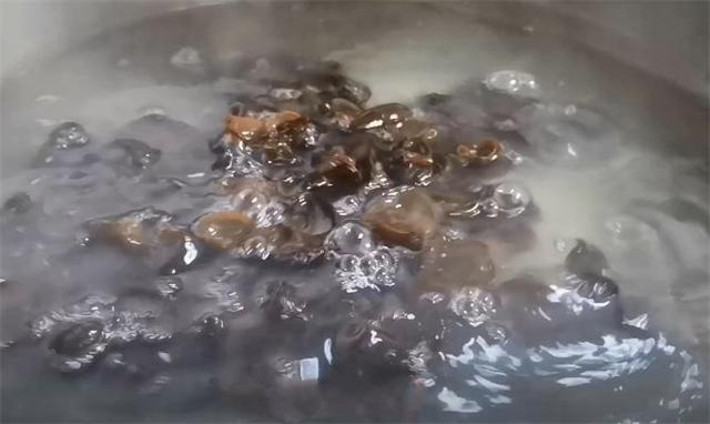 8.再把木耳倒入鍋中焯一下水,5分鐘后撈出控干水分備用。