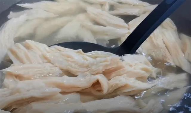 7.鍋中燒開水,將腐竹倒入鍋中焯一下水,焯水一分鐘后撈出。