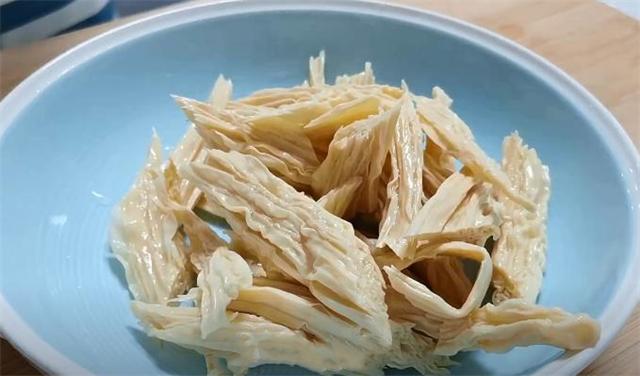 2.腐竹我已經提前泡發好了,把它撈出來控干水分備用。