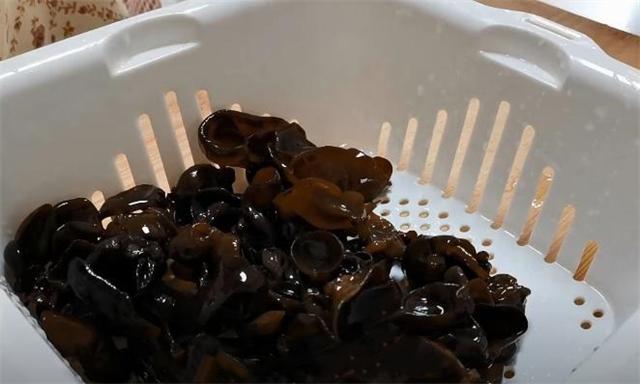 3.木耳我也提前泡發好了,把它清洗一下,撈出備用。