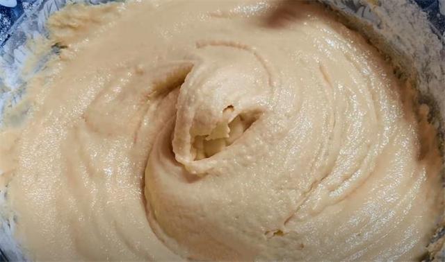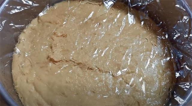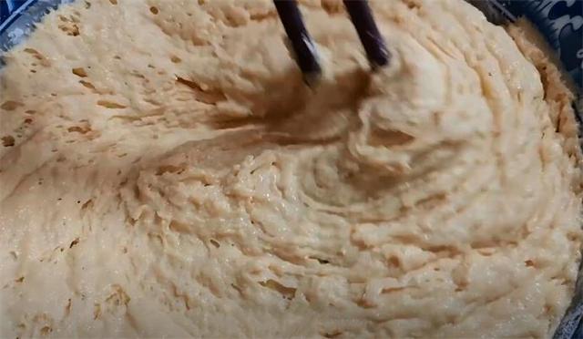 2.面已經(jīng)發(fā)好了,把醒發(fā)好的面糊再攪拌一下,排出里面的空氣。