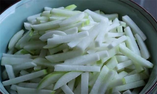 6.然后將蘿卜條倒入盆里面,往盆里倒入水進(jìn)去多沖洗幾遍,把上面的灰塵沖洗干凈。