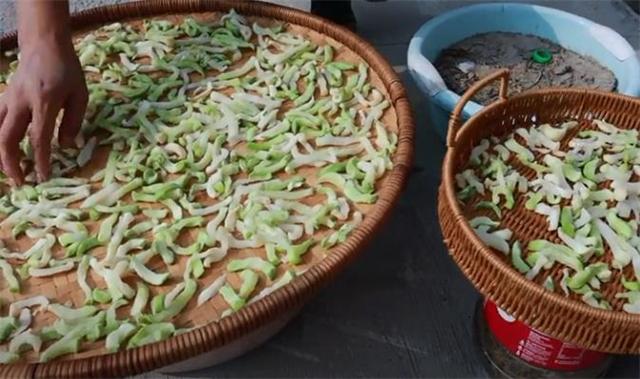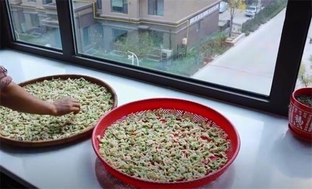 5.這些蘿卜條已經(jīng)晾曬好了,一直晾曬到蘿卜條表面有些發(fā)蔫的狀態(tài)就可以,經(jīng)過兩天的晾曬,蘿卜條上面沾有很多的塵土。