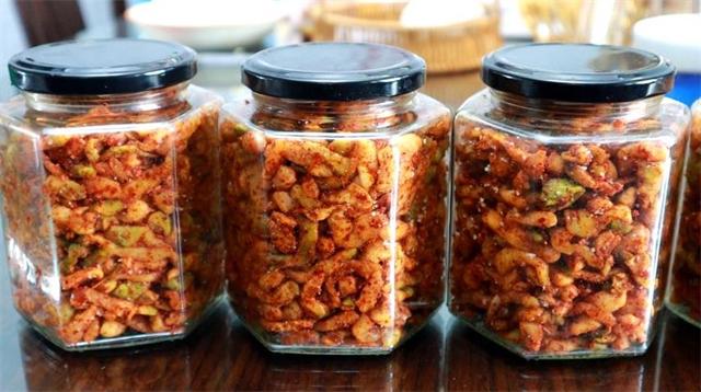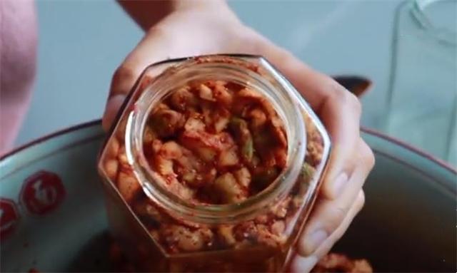 9.然后裝進(jìn)提前準(zhǔn)備的無水無油干凈的玻璃瓶里面,用手壓緊,壓瓷實(shí)一些。