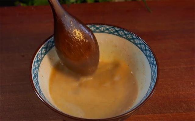 7.再準(zhǔn)備一個(gè)碗,往里面加入一勺面粉,加適量的食鹽和十三香,然后澆上熱油激發(fā)出香味,再用勺子把它攪拌均勻,這樣油酥就做好了。