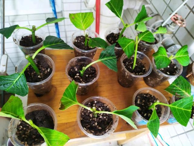 而且有很強的生命力,扦插之后,成活率也會很高,扦插成功后,只要保養好,當年就會開花,第二年就會長成參天大樹。 修剪繡球花枝時,一定要保持強壯,沒有病蟲,最好能有2個芽。底物可以用消毒過的透氣性好的腐葉沙質土。