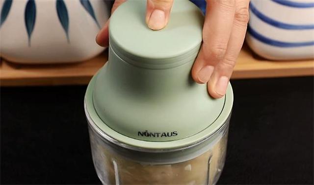 6.往蒜泥器里面放入幾個大蒜,幾秒鐘的時間就打成蒜末了。