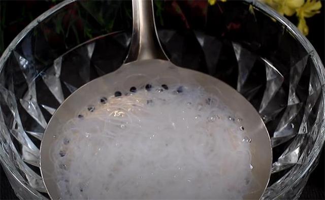 5.鍋里水開之后把粉絲下鍋燙熟,燙熟之后過下涼水防止坨在一起。